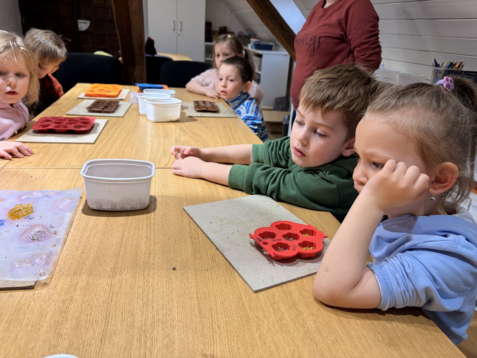 V dubnu jsme s dětmi navštívili muzeum, kde jsme se zúčastnili workshopu zaměřeného na výrobu mýdlíček. Děti si vyzkoušely tvoření z různých materiálů a zároveň se dozvěděly spoustu zajímavostí o rostlinách a jejich využití.