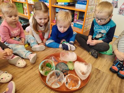 V lednu jme se vydali za polární kruh a zkoumali vlastnosti sněhu a ledu , zkusili jsme si , jak se bydlí v iglů , modelovali jsme sněhuláčky a pěkně si protáhli tělíčka cvičením motivovaným zimou. Moc nás bavilo dozvídat se a povídat si o různých povolání...a nejen povídat . Pekli jsme perník jako správní pekaři , navštívili jsme prodejnu se zvířátky , stavěli jsme vysoký komín. Už víme , co dělá táta a máma , když my si hrajeme s kamarády ve školce .