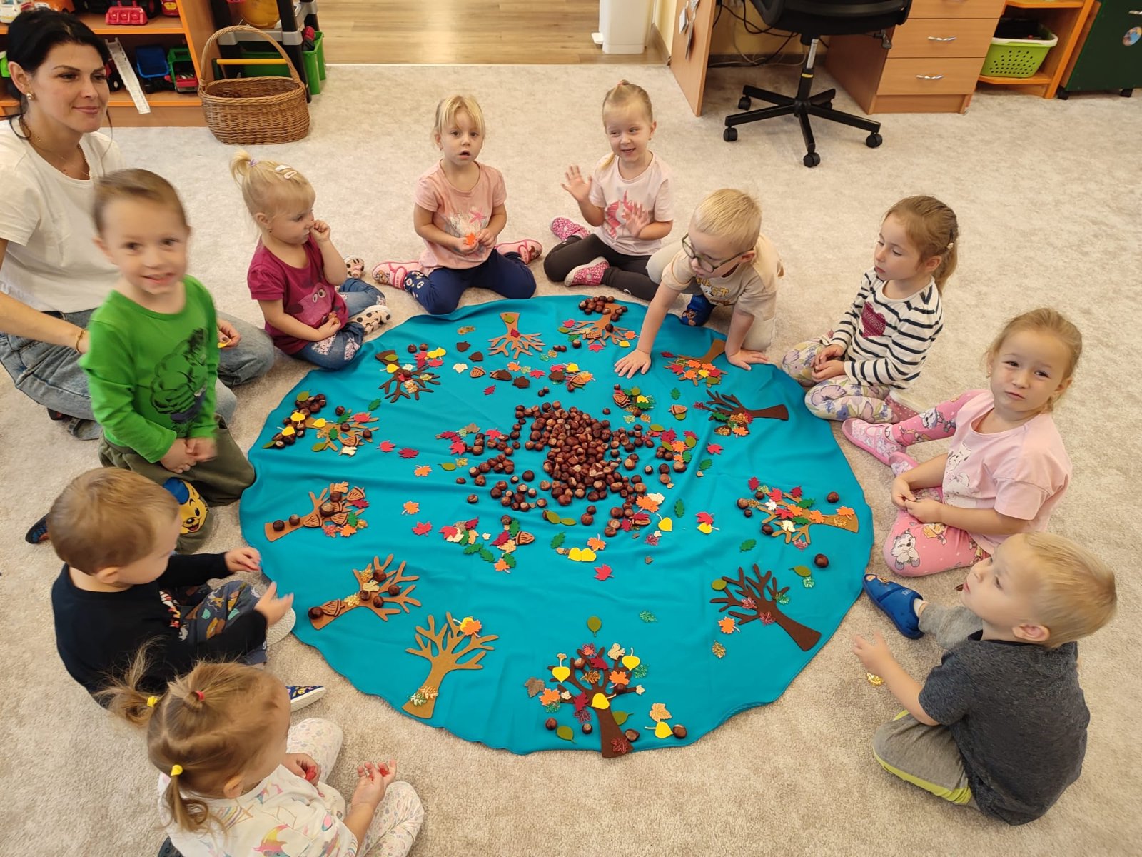 Začátek podzimu byl v naší třídě plný barev , experimentů , radosti z poznávání ... Naučili jsme se jak se mění počasí , jak je barevná podzimní příroda , vyráběli jsme z přírodnin , naučili se nové písničky a básničky...