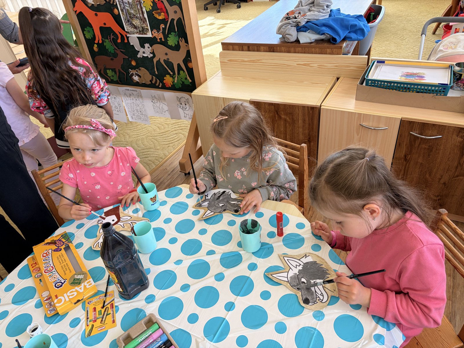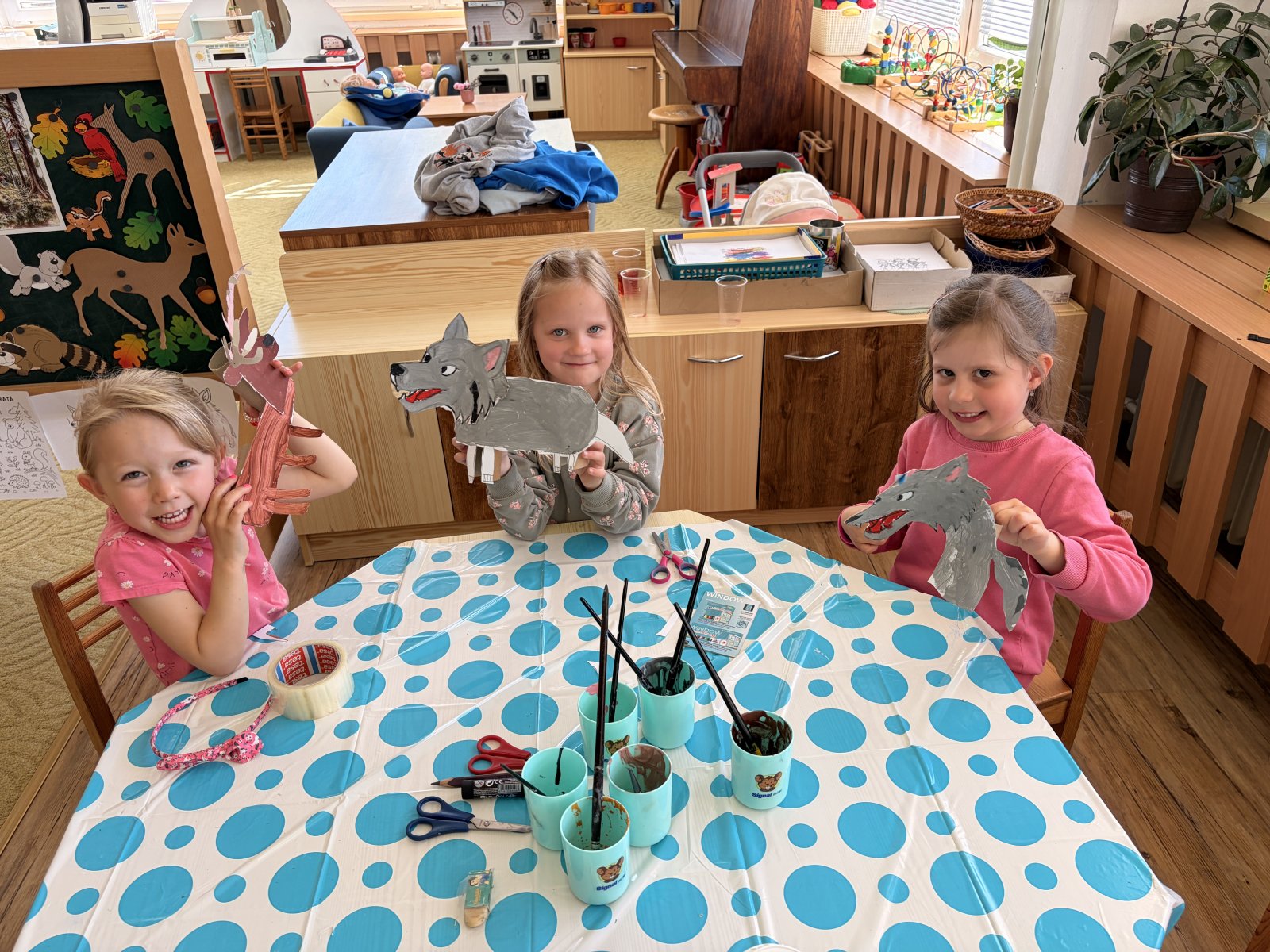 Děti z Motýlků byli pozváni do MŠ Sovičky na výtvarnou přehlídku. Přehlídka se nesla v duchu "lesních zvířat" a na děti čekalo spoustu kreslení, lepení a vystřihování. Nakonec jsme vytvořili nádherné vlky a jelena.
